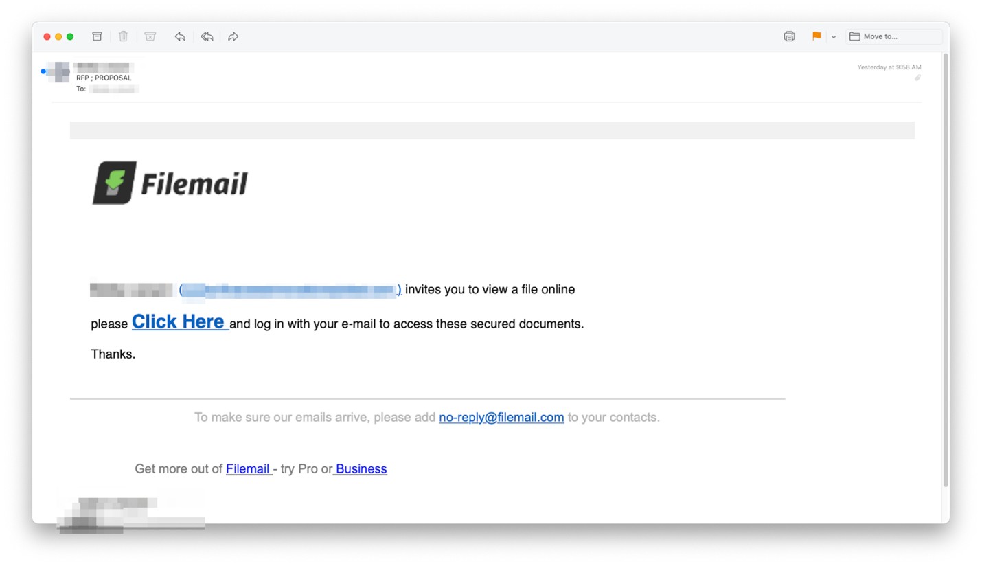The only way to catch these phish for sure is to check with the company directly that they have sent you an RFP application. Also, be cautious with links in an email that require you to log into you a platform account.